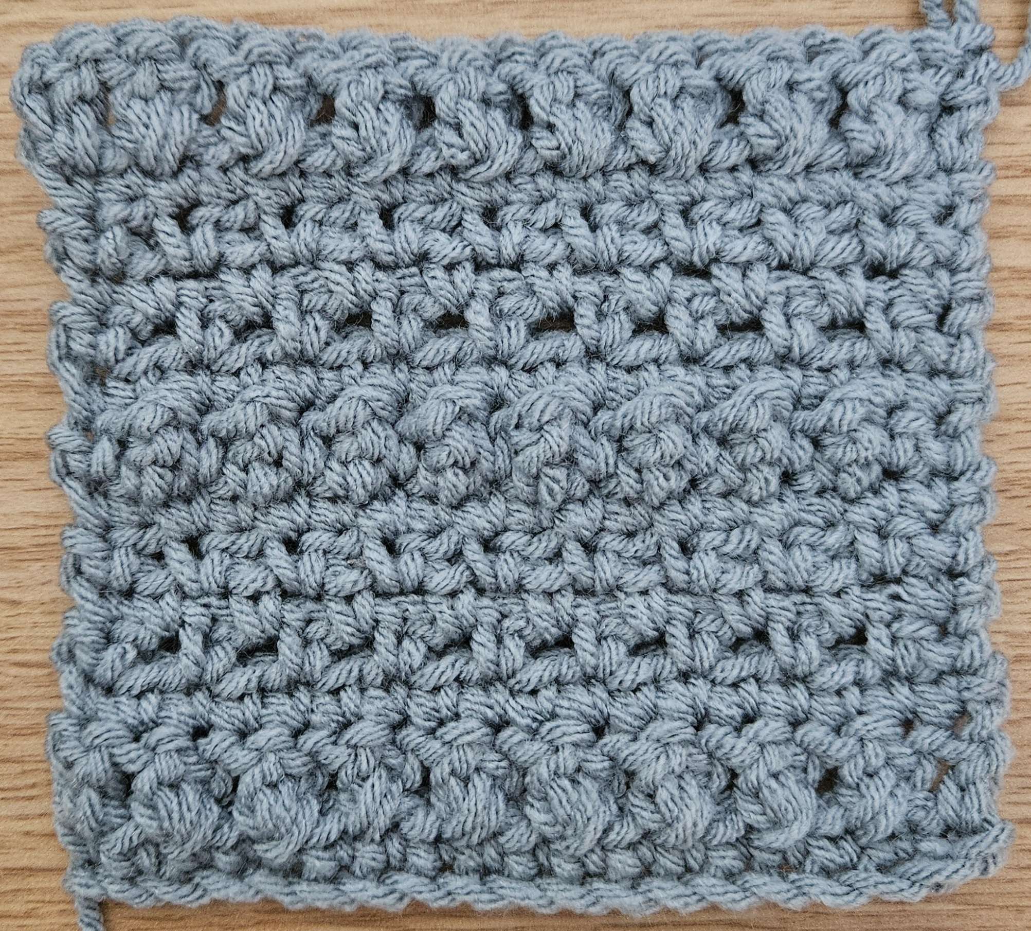 Let’s try the crossed double crochet, moss, and mock bubble stitches for the scarf.