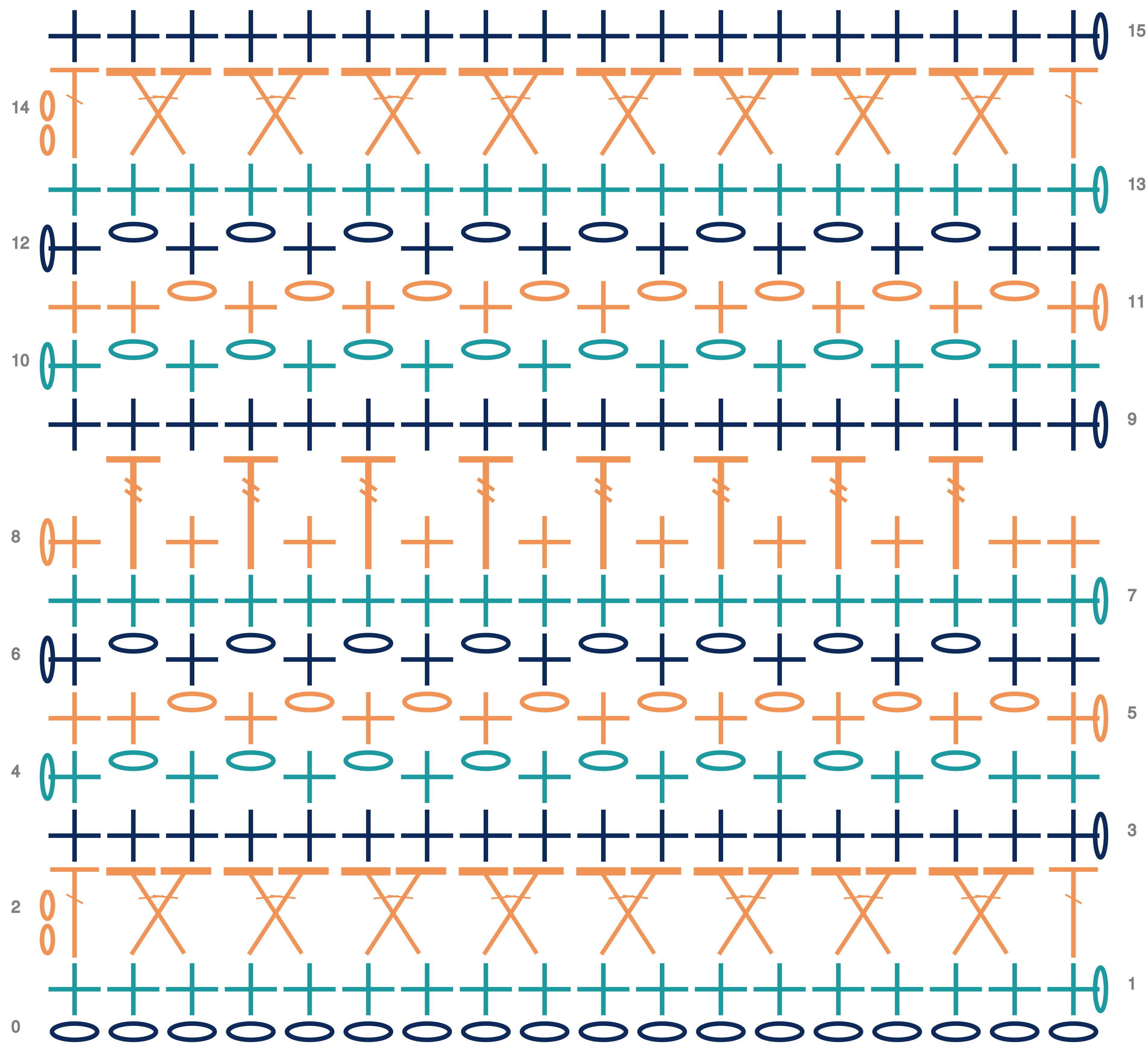 - Input stitches row by row