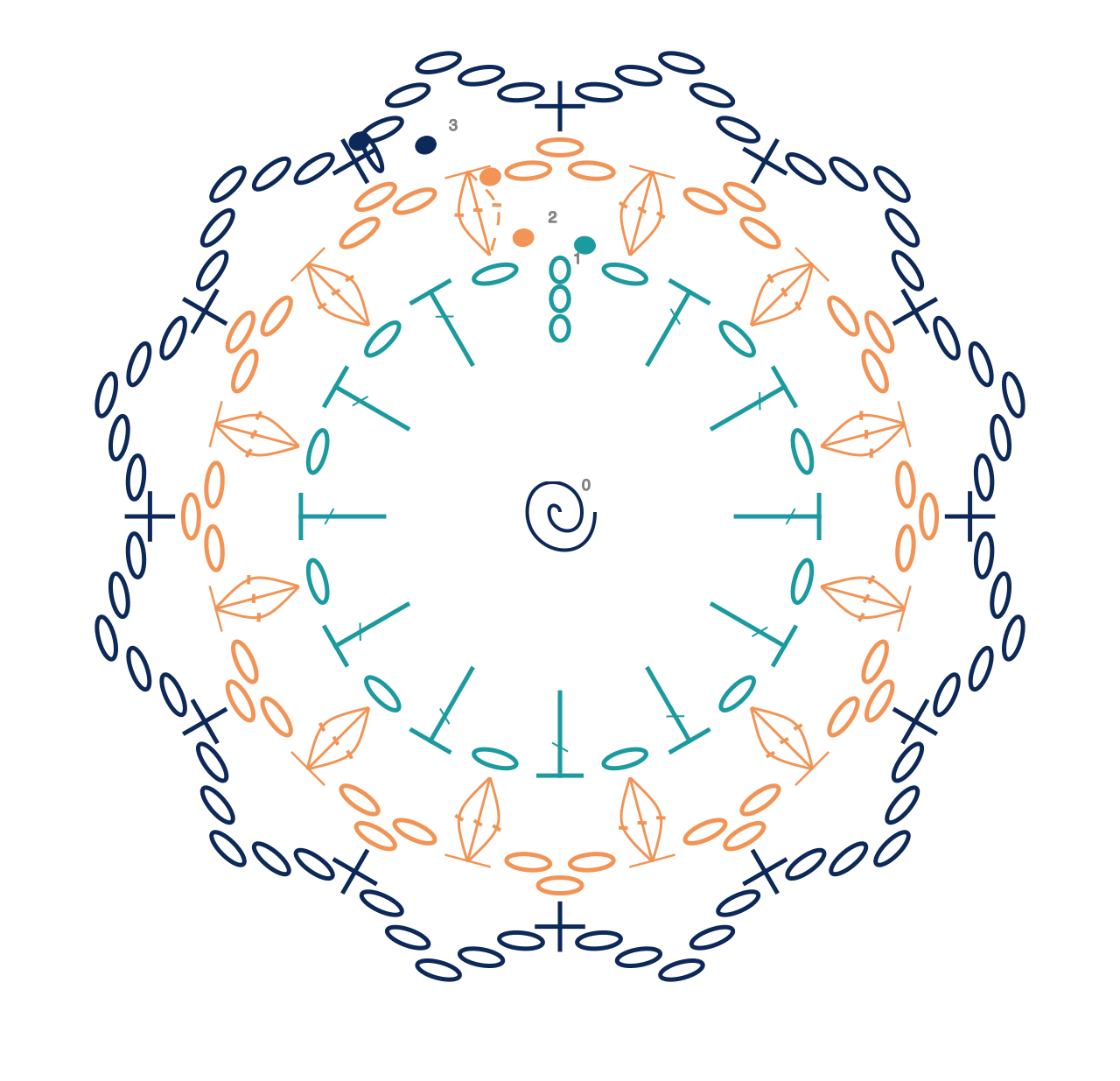This work is part of an ongoing effort to understand the architecture of crochet in the round — how stitch rules, placement, and notation interact to produce stable circular structures. While much of this investigation centers on charts and diagrams, it also creates space for related studies in materials, color, and pattern translation.